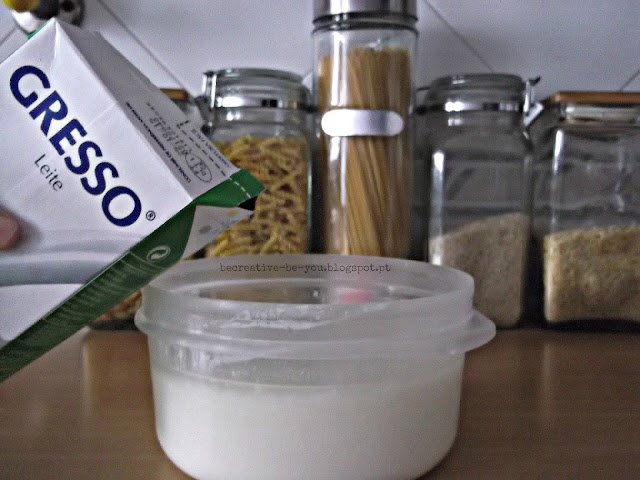 Basta verter o leite (à temperatura ambiente) para um recipiente e o iogurte.
