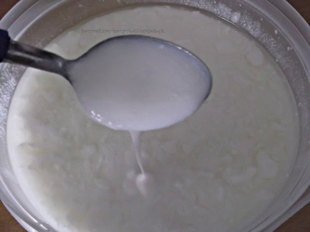 Aqui nesta foto ainda está um pouco líquido, mas quando vai ao frigorífico fica um pouco mais espesso.